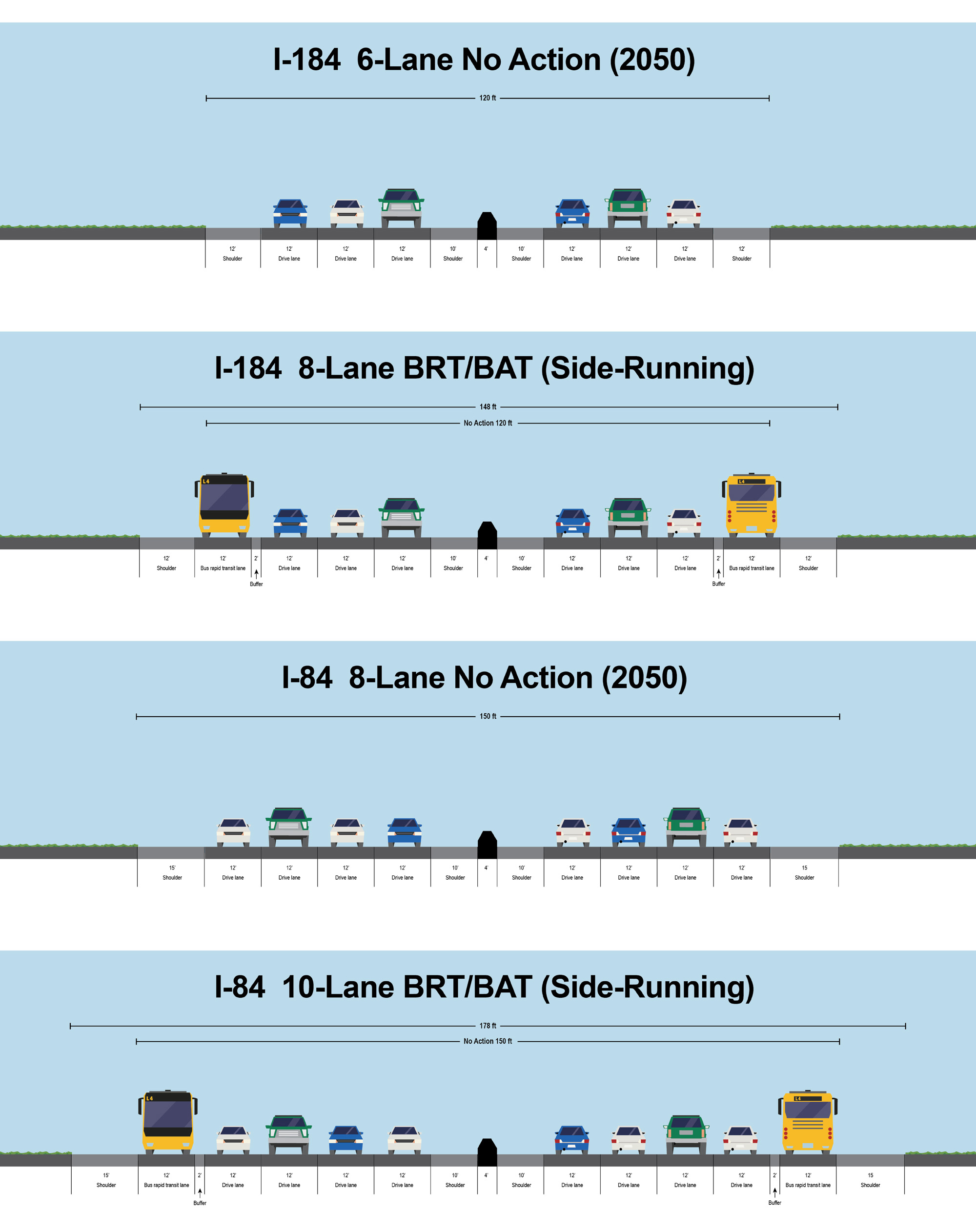 - I-84/I-184 potentially has the fewest traffic impacts given the free flow nature of the freeway.